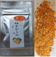 原材料:柚子皮・柚子粉末・本鷹唐辛子・香川本鷹唐辛子 あまり辛くなくても、唐辛子の味はちゃんとあります。