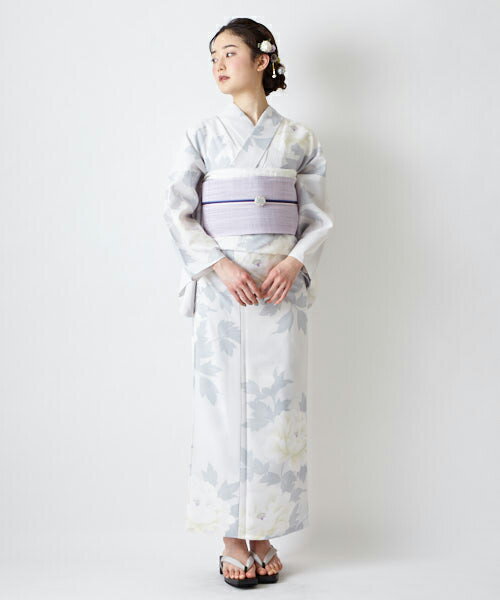洋風百花 白 きもの道楽【販売商品 プレタ浴衣単品】