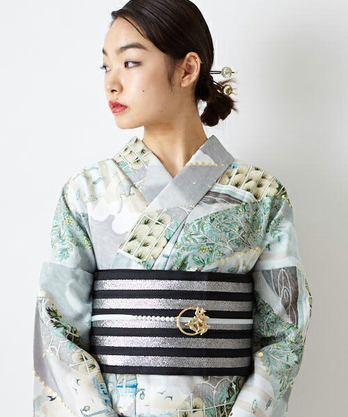 京袋帯「ツツムブーケ」【ふりふ 秋冬 半幅帯 半巾 着物 きもの 浴衣 浴衣帯 日本製 リボン 刺繍 リバーシブル ポップ レトロ モダン かわいい お洒落 華やか 和服 和装 和装小物】
