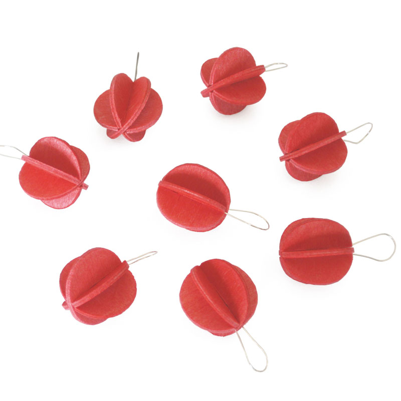 ブライトレッドのミニボール(1,7cm)×8個がセットで付いています オーナメントのミニボールは、メッセージカードにもなり定形外郵便で送る事も出来ます。