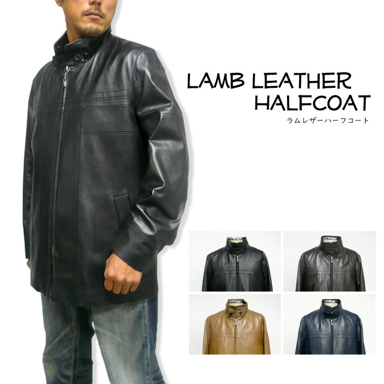 ラムレザーハーフコート(S〜3L)[羊革][ジャケット][小さいサイズ][大きいサイズ][メンズ][紳士][送料無料]