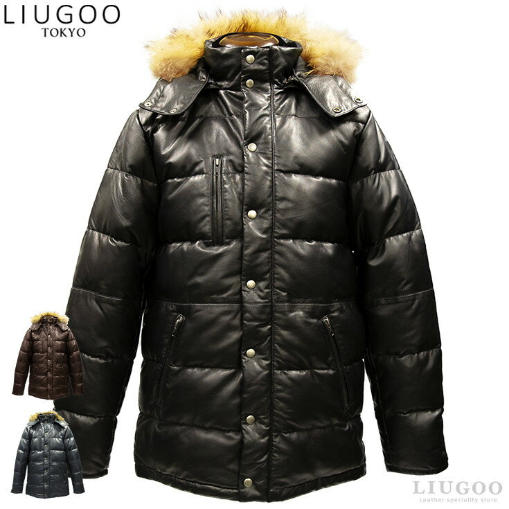 リューグーレザーズ 本革 レザーダウンコート メンズ リューグーレザーズ LG4834 レザージャケット ダウンジャケット 革ジャン 皮ジャン 本物 天然羽毛 毛皮 ハーフコート 秋冬 海外発送可