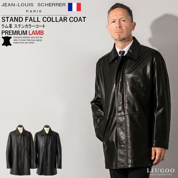 JEAN-LOUIS SCHERRER 本革 スタンドカラー ハーフコート ビジネスコート メンズ ジャン=ルイ・シェレル 6061 通勤用コート レザーコート レザージャケット 本革コート 本革ジャケット 本皮ジャンパー トレンチコート チェスターコート ロングコート ステンカラーコート